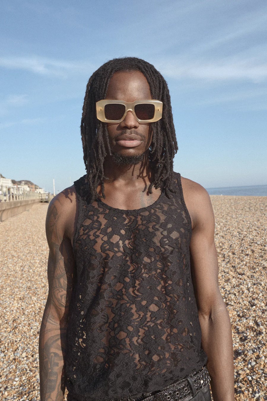 オーバーサイズのスポーツフレームを再構築したライルは、まさに構造と精度の研究そのものです。クアドラのシルエットはシャープに引き締まり、建築的な存在感で注目を集めます。面取りされた重厚なブロウが深いラインを刻み、その力強さを強調する一方で、角張った輪郭が印象的なエッジを効かせています。緩やかなブリッジの凸凹が荒々しい幾何学的な印象を和らげ、快適な掛け心地を約束します。また、カーブしたラインが直線的な構造に自然な流れをもたらします。