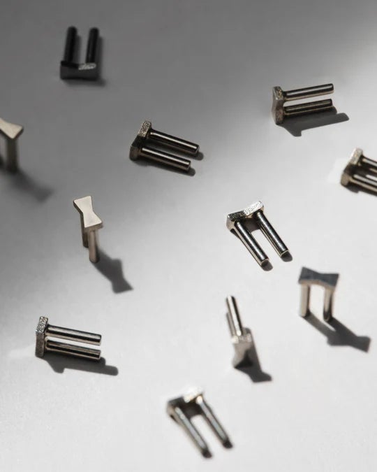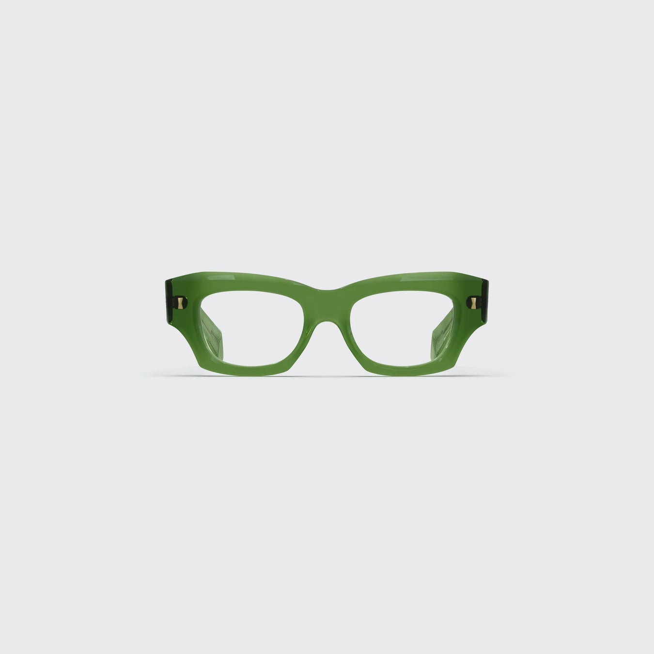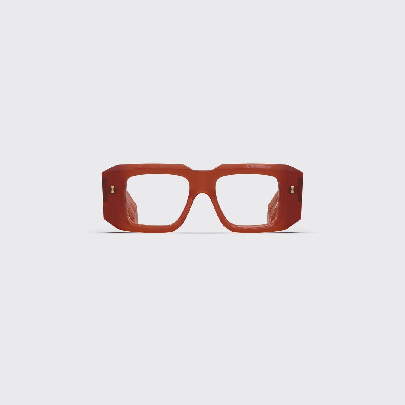 クラシックな“quadra(四角形)”シルエットを大胆に再構築したモデルで、太めのリム(縁)と左右対称に広がるテンプル(つる)が特徴。建築的で力強い印象を与えます。フレームの角はバレル技法(削り出し加工)によって鋭く仕上げられ、澄んだ彫刻のような美しさが際立ちます 。