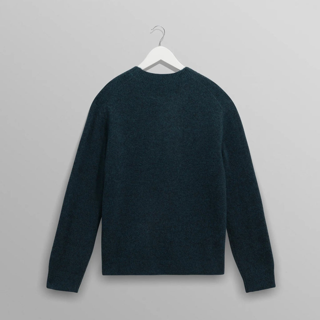 Wilde - Teal Fluffy Wool Crewneckワックスロンドンの定番のひとつである「ワイルドクルー」。リラックスフィットのカッティングで、温かみのあるウール混紡素材に、クラシックで柔らかな起毛感のあるティールカラーを表現しています。