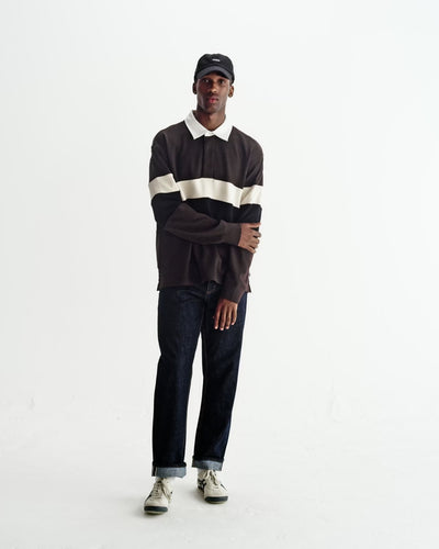 Rowhill - Brown And Black Panelled Loopback Rugby Shirt